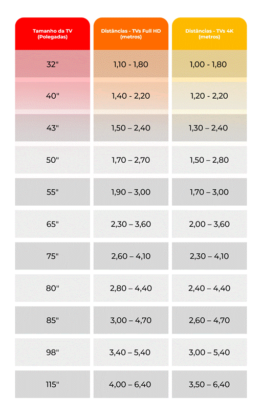 O tamanho da TV deve ser proporcional ao espaço disponível. Uma tela pequena em uma sala grande pode comprometer a experiência, enquanto uma tela muito grande pode sobrecarregar o ambiente.
