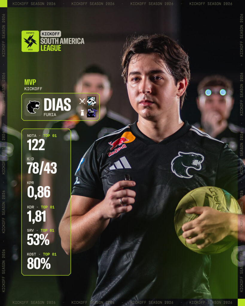 O destaque individual foi Dias, da FURIA, eleito MVP da competição. Outros nomes também tiveram atuações consistentes ao longo do torneio, como Fntzy (NiP), Soulz e VITAKING (FaZe Clan), enquanto Paluh, do Fluxo W7M, acumulou o maior número de premiações individuais.