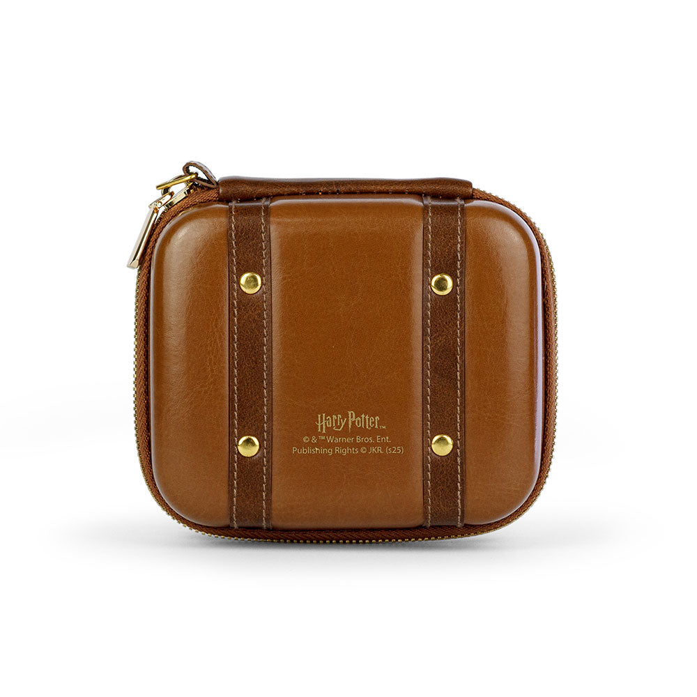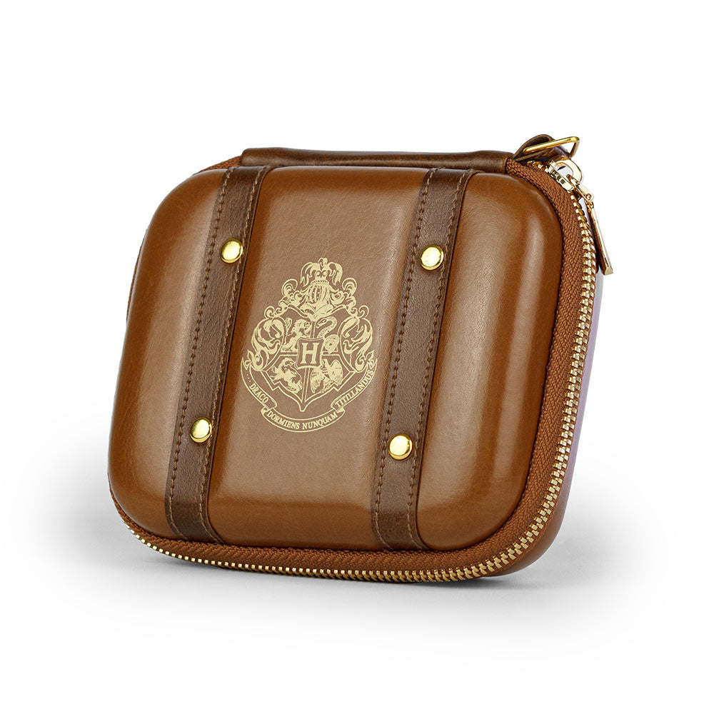 Inspirado nas malas dos estudantes mais icônicos de Hogwarts, o estojo rígido conta com divisórias internas inteligentes e espaço extra para fones de ouvido, cabos e outros acessórios, mantendo tudo sempre organizado e acessível.