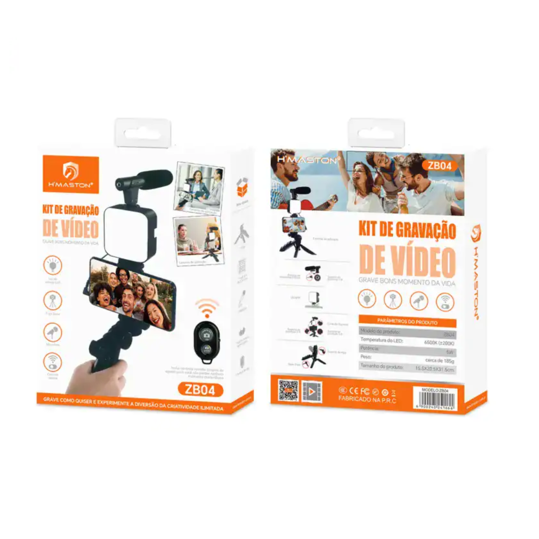 O Kit de Vídeo e Transmissão H’maston Studio ZB04 é a solução definitiva para quem deseja criar conteúdos profissionais usando apenas o celular. Seja para vlogs, transmissões ao vivo de games, tutoriais de beleza ou vídeos para o seu e-commerce, este kit entrega estabilidade, iluminação e áudio nítido em um único pacote ágil e portátil.