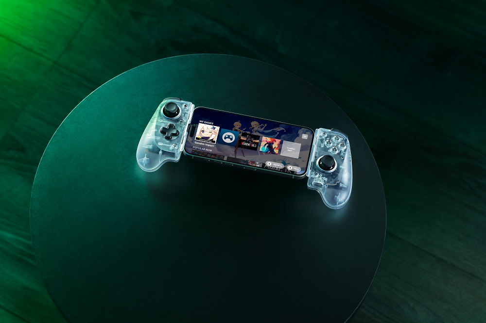Entre os novos lançamentos está o Razer Kishi V3 – Edição Phantom White, controle para jogos mobile e PC que adota o mesmo conceito visual translúcido, reforçando a expansão da linha para além do desktop.