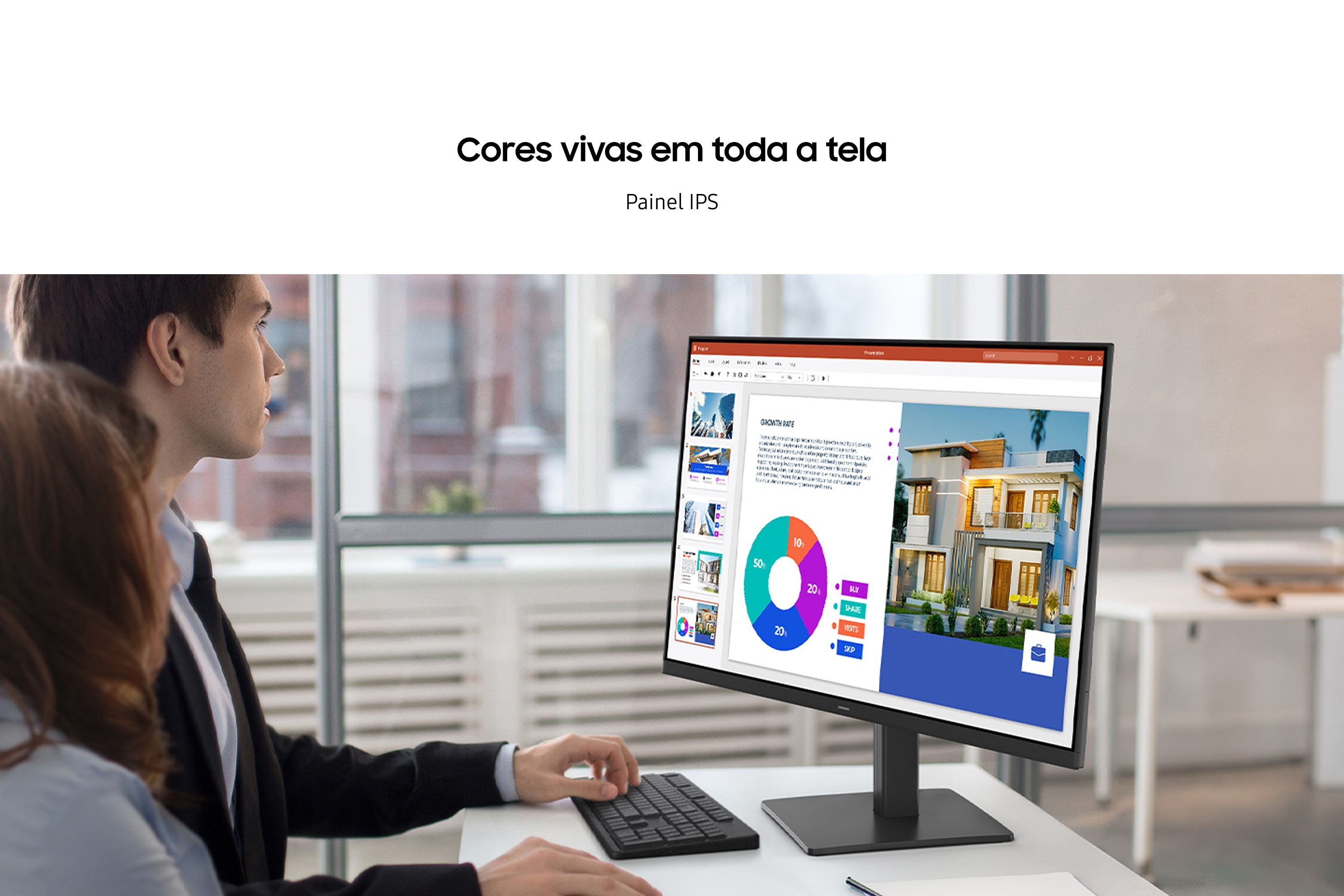 O modelo ainda traz conectividade múltipla e estética moderna, para se adequar a diversos tipos de tarefas e ambientes. Com ele, é possível conectar dispositivos diretamente ao monitor para obter mais flexibilidade, tornando o ambiente de trabalho mais conveniente. Além disso, seu design sofisticado, com bordas ultrafinas, faz com que o monitor se encaixe em diversas configurações, independente do ambiente.