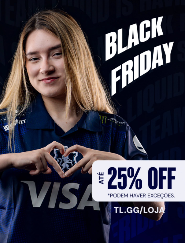 A Team Liquid iniciou sua Black Friday no Brasil, oferecendo até 25% de desconto em peças de vestuário e acessórios oficiais da Cavalaria. As promoções estão disponíveis tanto na loja física, instalada na Alienware Training Facility Brasil, quanto no e-commerce da organização, e seguem até 3 de dezembro.